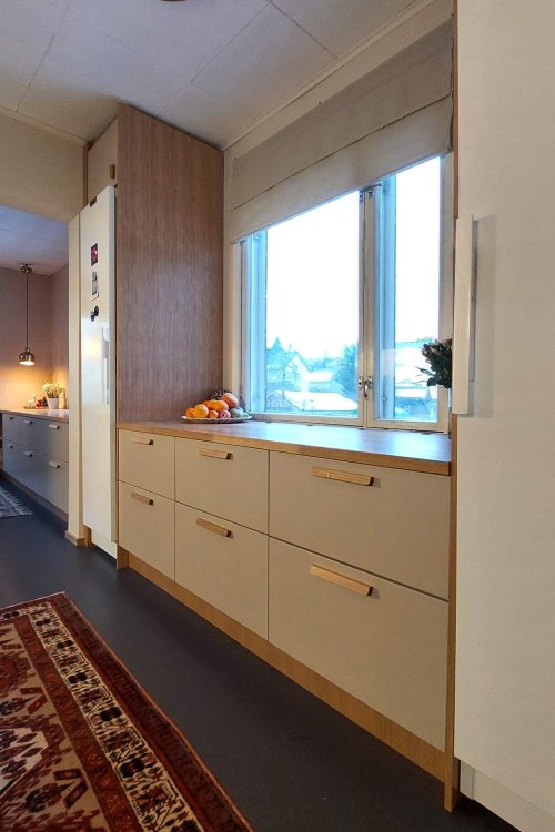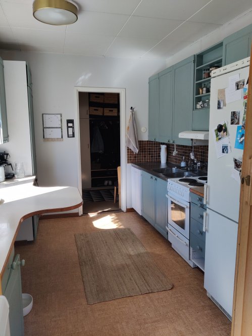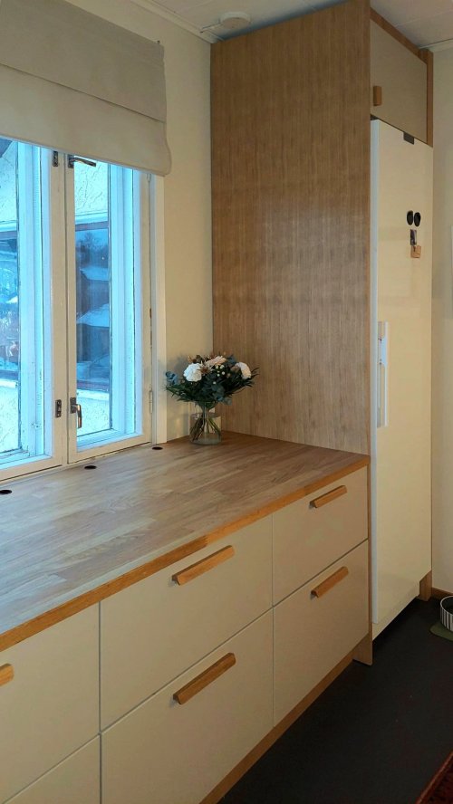 Remontti- ja asennusprosessi sujui pääosin hyvin, vaikka pieniltä takapakeilta ei täysin vältytty. Teimme itse keittiön ja ruokahuoneen purkutyöt sekä pohjatyöt, kuten seinien levytykset ja lisäeristykset, mutta tilasimme keittiöasennuksen Idealin kautta. Se osoittautui erittäin viisaaksi ratkaisuksi, sillä kun keittiön asennus oli edessä, alkoi remonttiväsymys jo iskeä. Vanhan talon rakenteet ovat harvoin täysin suoria, ja Idealin asentaja teki kyllä todella ammattitaitoista työtä.